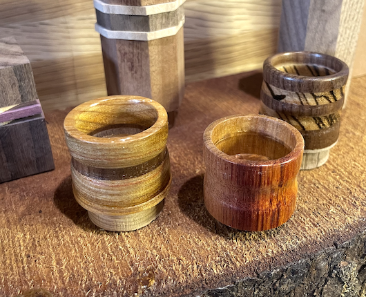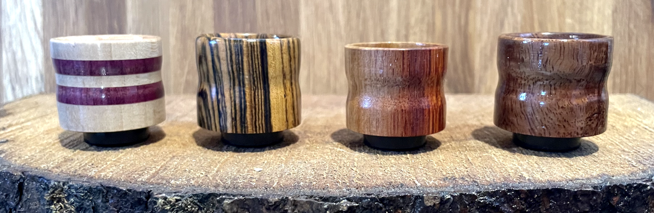 Hand made, hardwood chalk holders starting at $35 + tax. These round chalk holders include either a magnet or string attached to a wooden dowel.