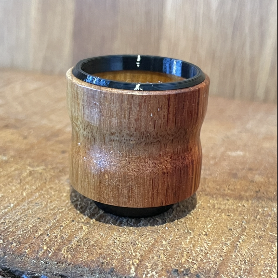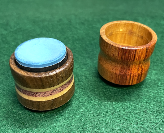 This round chalk holder is made from curly koa and is only available in limited quantity. It includes a magnet and cap.
