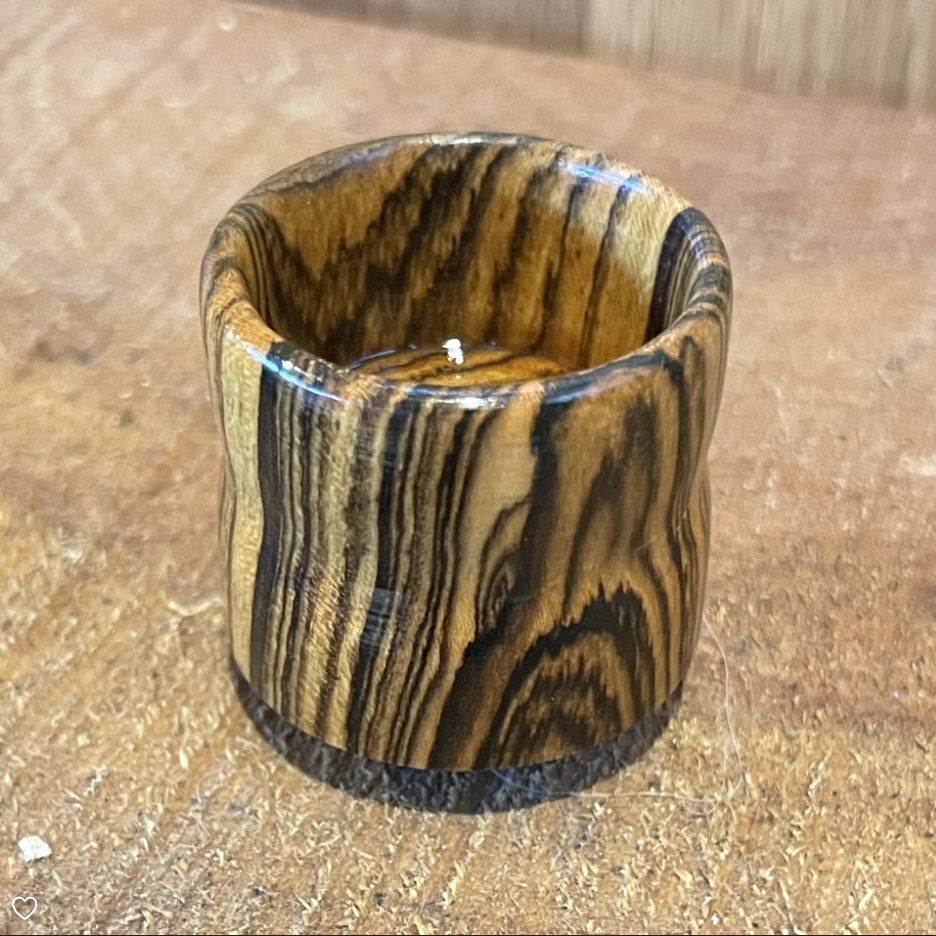 This round chalk holder is made from zebrawood. It includes a magnet and cap. This chalk holder was made with a snug fit and doesn't need a rubber seal.